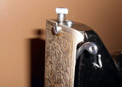 If you have a vintage Singer sewing machine, you may have noticed the phenomenon of side creeping, seen in the stitch sample on the right. It's frustrating to have to fight with your fabric to get a straight row of stitches, so I'll walk you through the process of adjusting the pressure on your presser foot (try saying that five times fast!), so you can get a nice straight row of stitches.