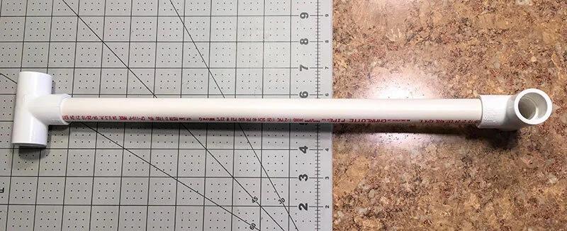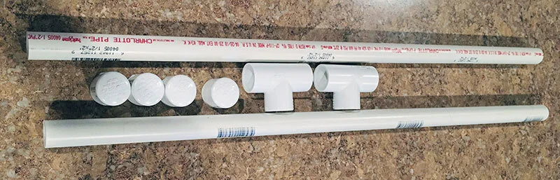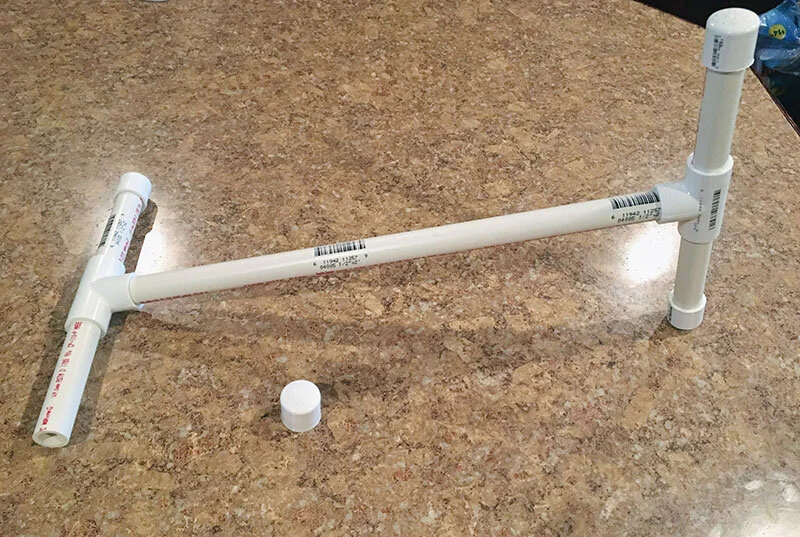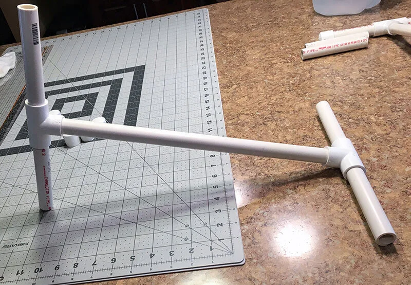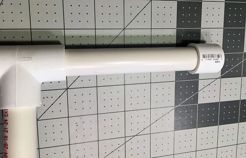 Putting it together is super easy. Lay out your longest piece and put the two tee fittings on either end. Make sure they’re perpendicular or pointing in opposite directions.
